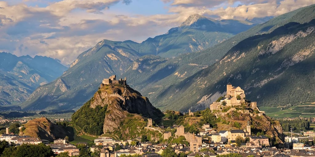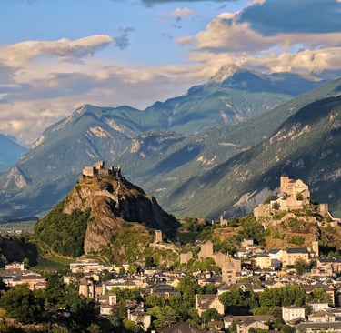 The highlight here is the pair of hilltop landmarks: Valère Basilica and Tourbillon Castle, which sit dramatically above the town.