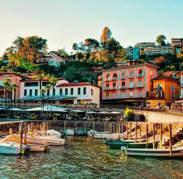 Palm trees line the promenade, colorful buildings reflect in Lake Maggiore, and the atmosphere is relaxed and sunny. It’s the perfect place to slow down, enjoy a coffee by the water, and soak in the scenery.
